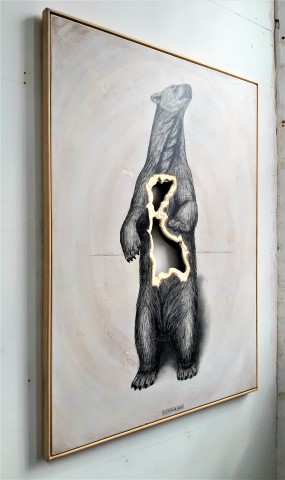 The Polar Bear, 2019. Graphite on white washed plywood that is then sanded. 125 x 93 x 4 cm. Framed in white varnished obeche.