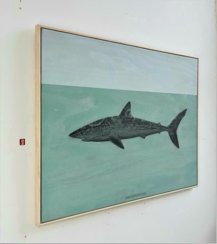 The Shortfin Mako Shark, 2020. Graphite and acrylic on plywood. 70 x 85 x 4 cm.